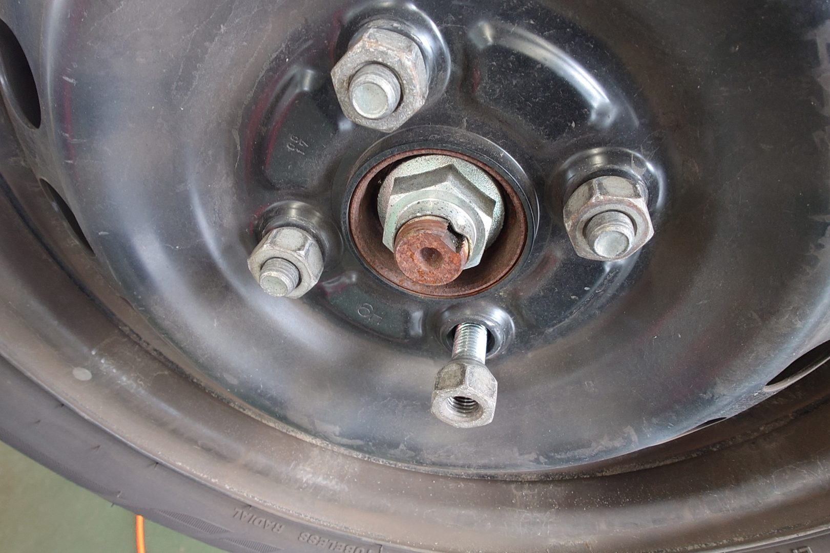 上のナットみたいに先端がテーパー切ってあるやつはJIS規格といいまして、左側用は逆ネジになっていました。適切なトルク管理と、あとはホイール・ハブ両面の錆腐食に気をつけていれば脱落には繋がりにくかったといいます。
