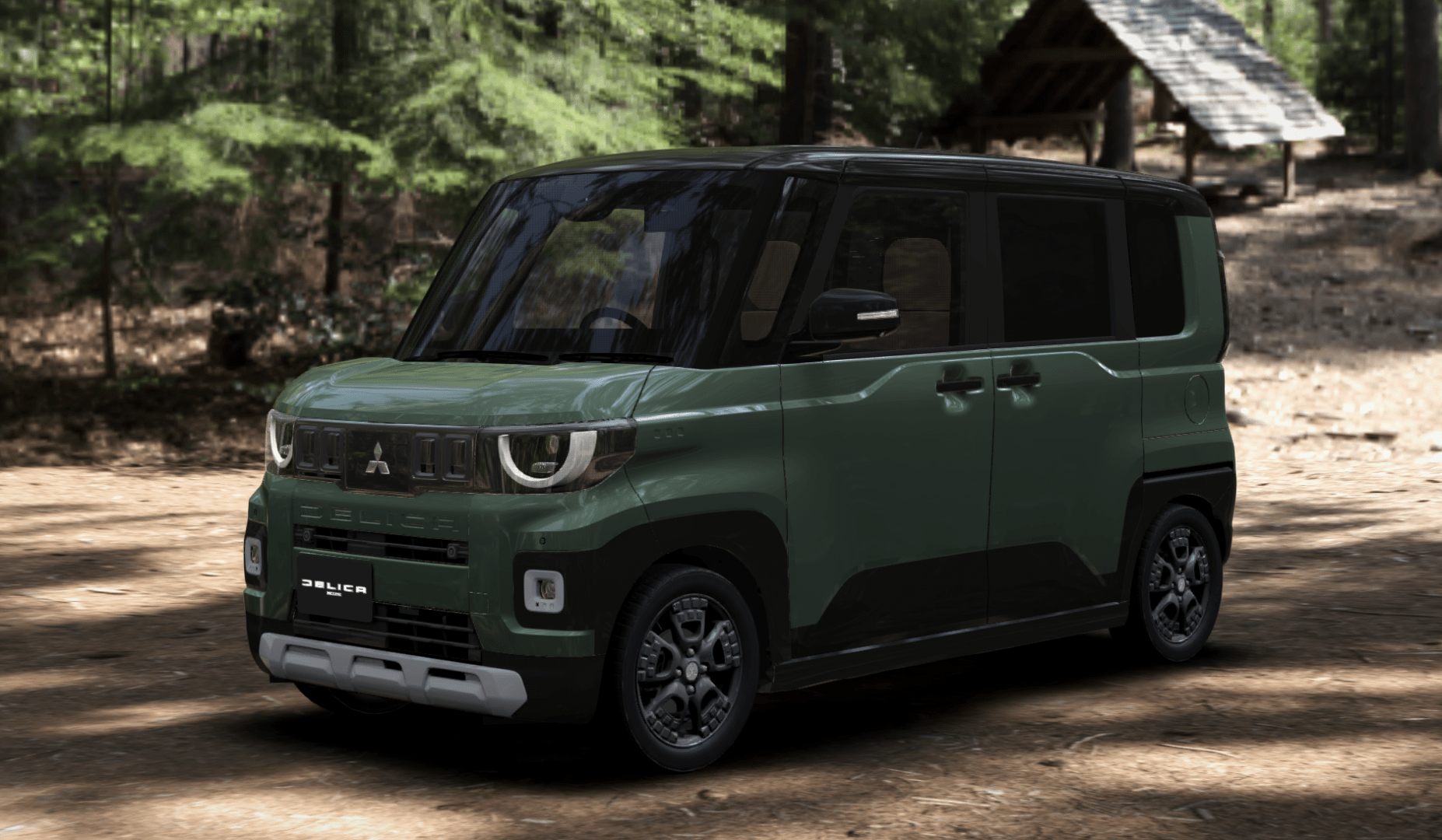 前モデルのデリカミニのテーマカラー、アッシュグリーンメタリック/ブラックマイカも