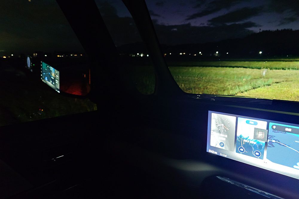 長岡市内の街中とかでは気にならなかったですが、郊外の暗闇の中を走っていると、このメーターやナビの画面がサイドウィンドゥにめっちゃ映り込んでる・・・イマドキのクルマってこんなモン?