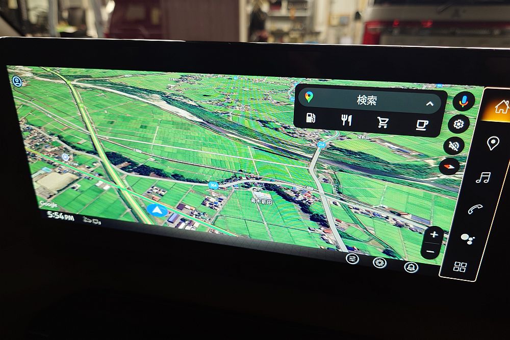 室内はと言いますと、Google搭載ナビが一際目を惹きますね~ 航空写真表示もできるんだ。すげぇ。