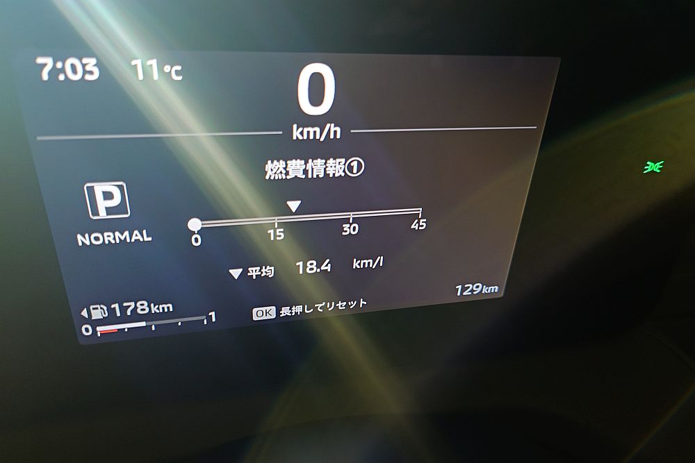 今までもなかったワケではなかったですが、面積が広いだけに気になるかもしれません。ここはお好みに応じて画面の輝度を下げて・・・試乗車では見た目の煌びやかさも大事にして輝度はいじってないです。