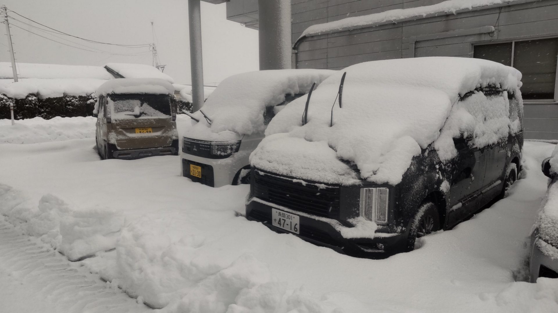 先週からの大雪で試乗車たちも一晩でこんな具合に!?