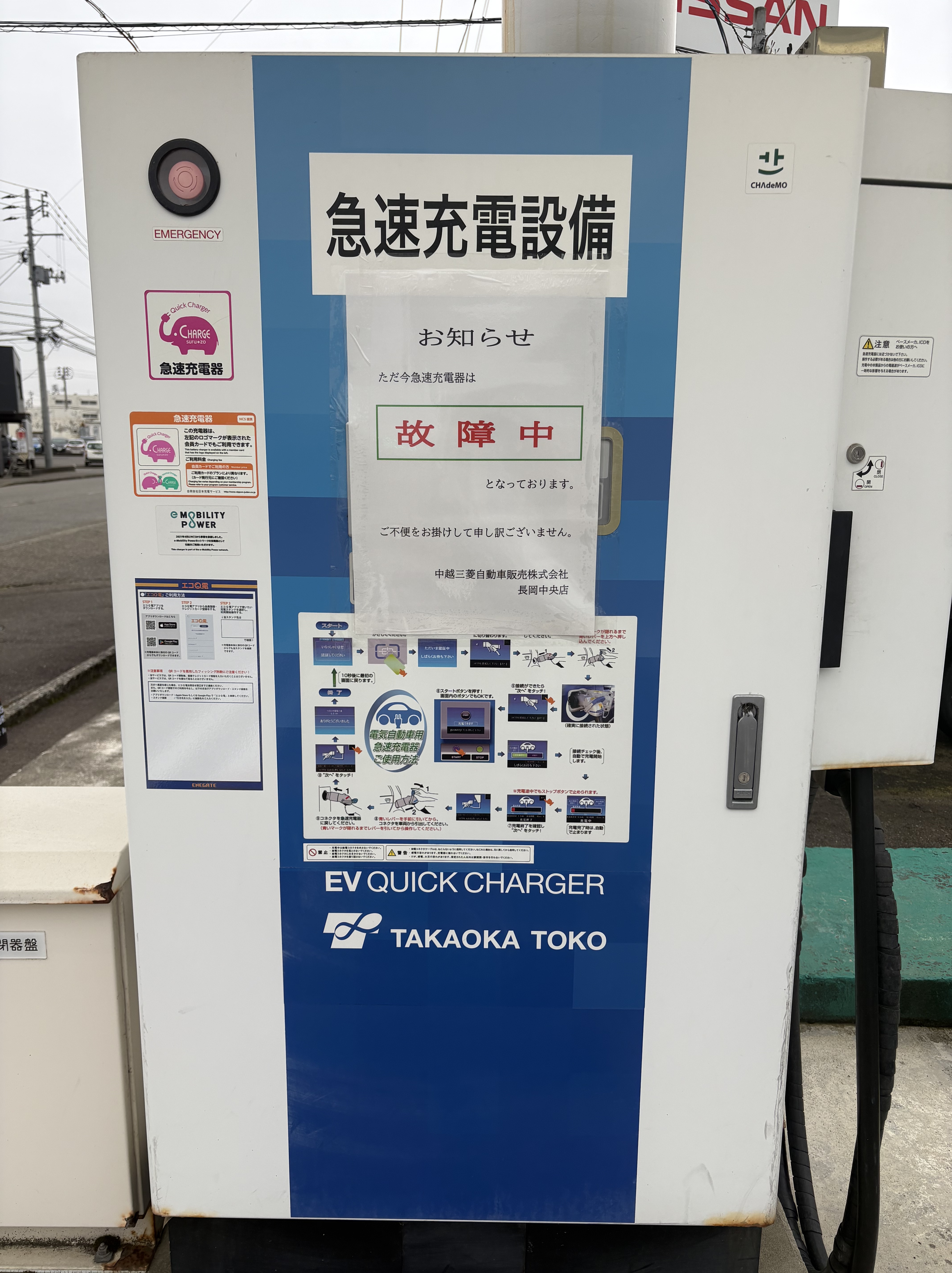 当店の急速充電器は、現在故障のためご利用いただけません。