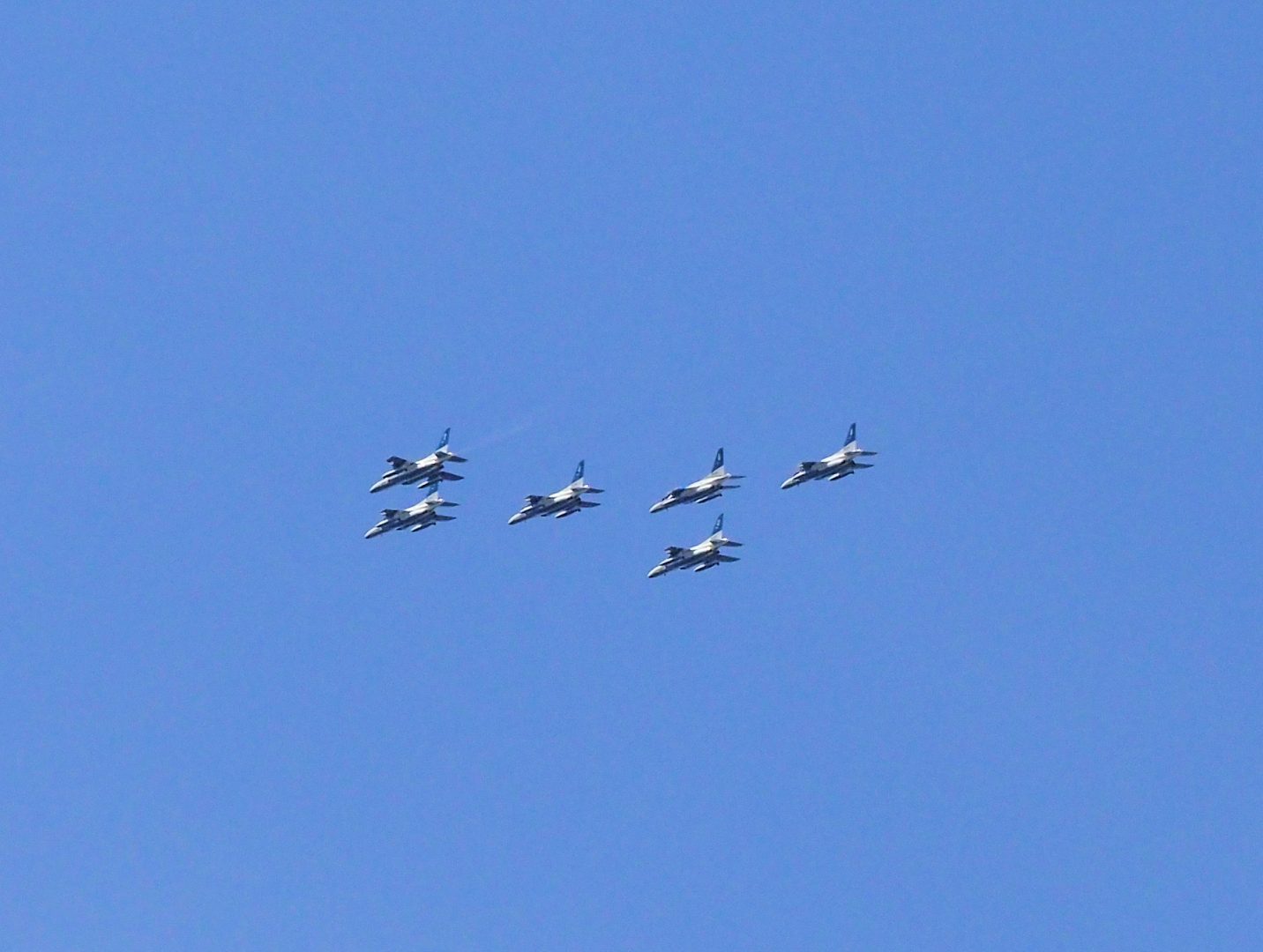さて,先日小千谷市上空にてブルーインパルスの展示飛行がありました。ワタクシは会社にいたので見に行けなかったのですが,基地からの通り道(空?)に会社の上空を飛んでいましたので,何とか後ろ姿だけですが撮影できました。